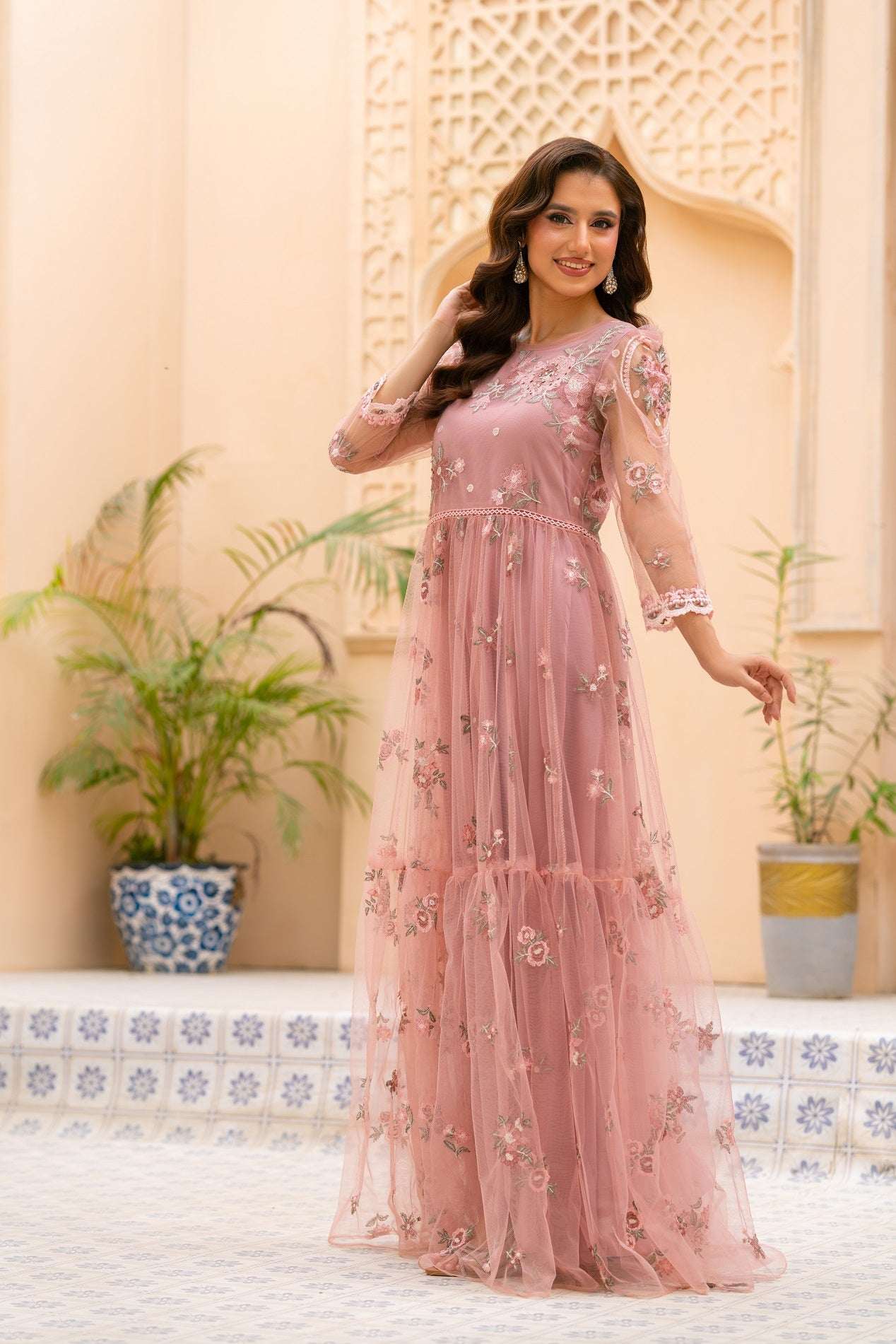 Net Embroidered Fabric with Hand Work Touching Lining Attached