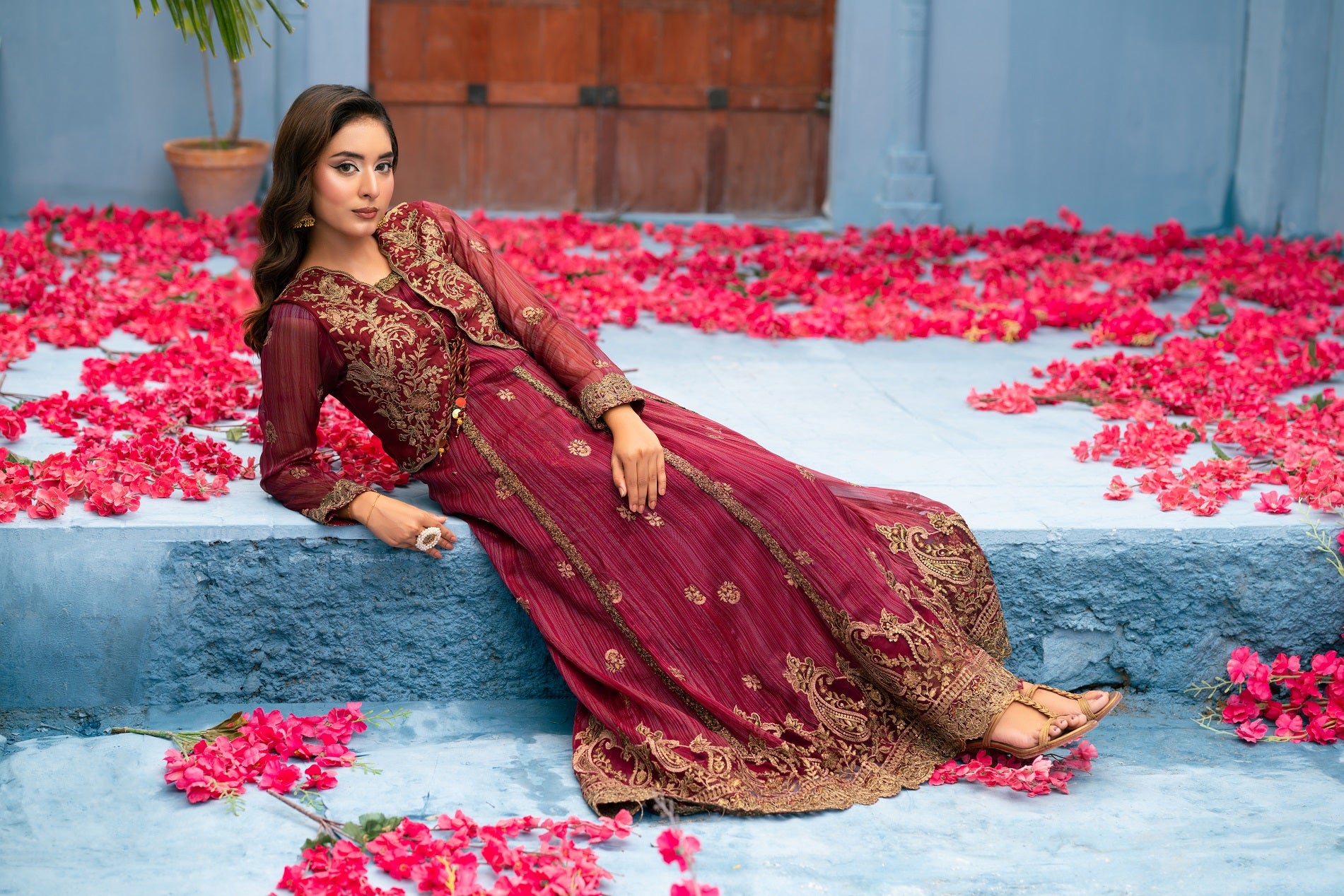 Maisori Embroidered Fabric with Coading work Lace Back Koti Embroidered  lining attached