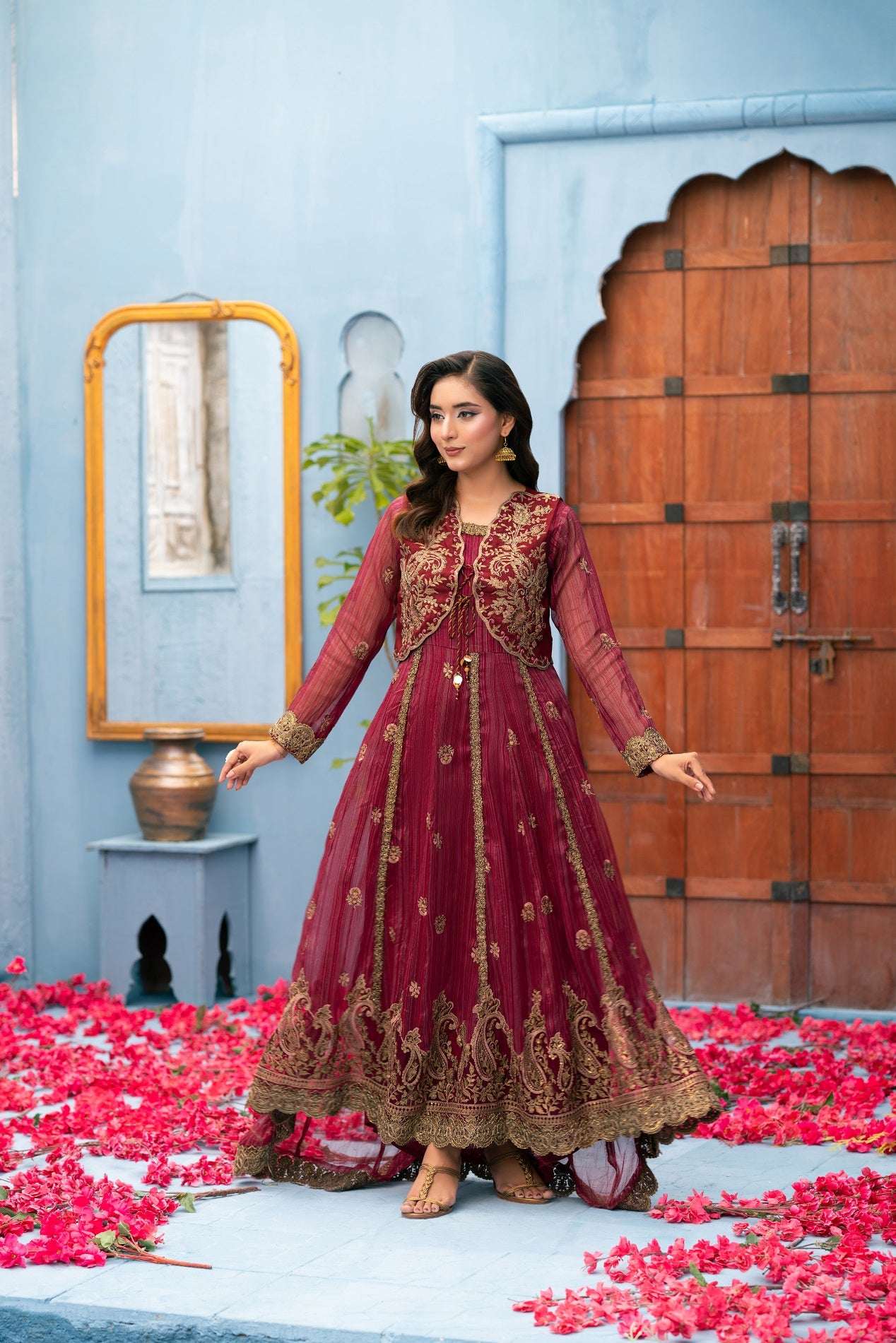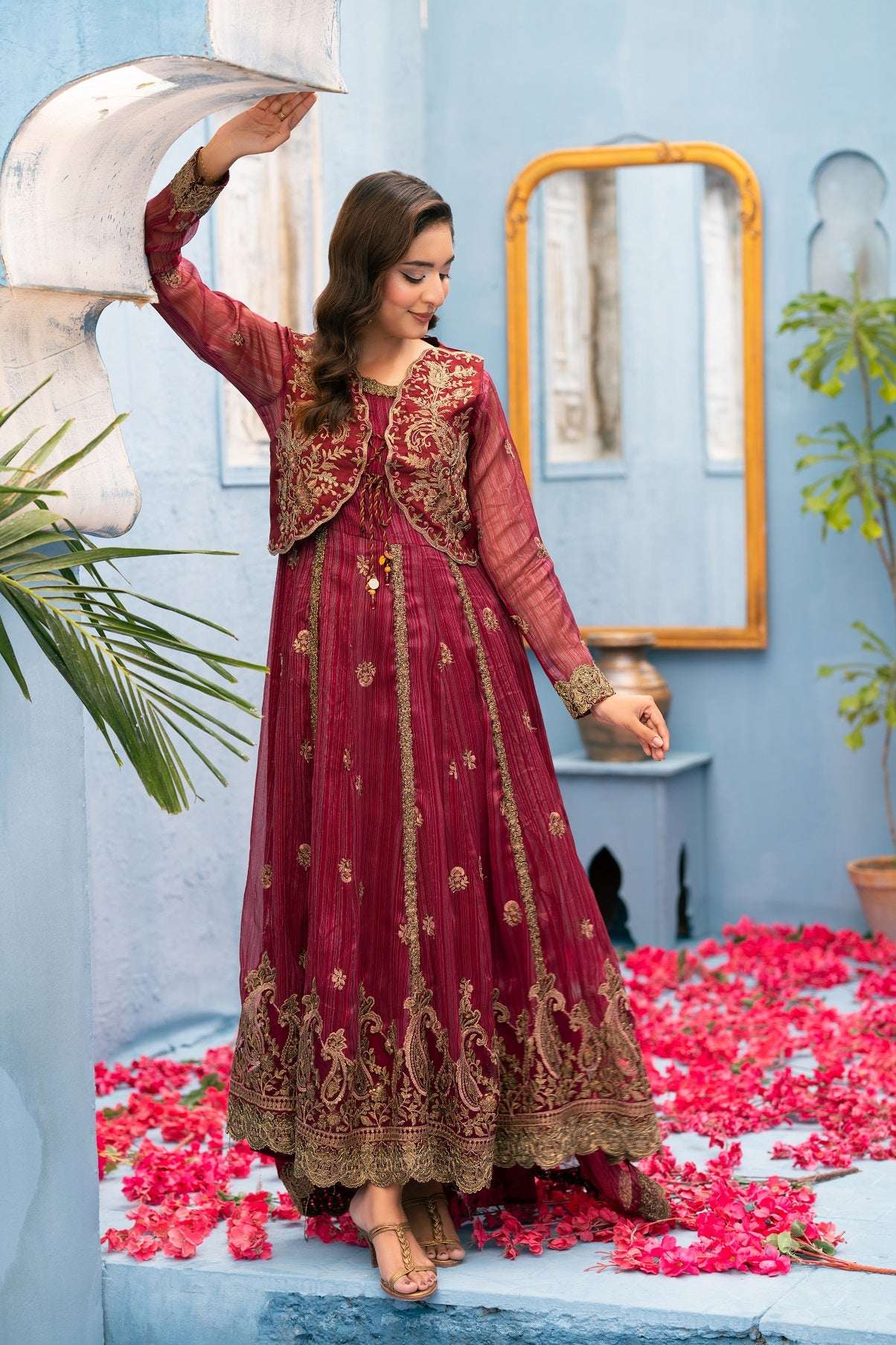 Maisori Embroidered Fabric with Coading work Lace Back Koti Embroidered  lining attached