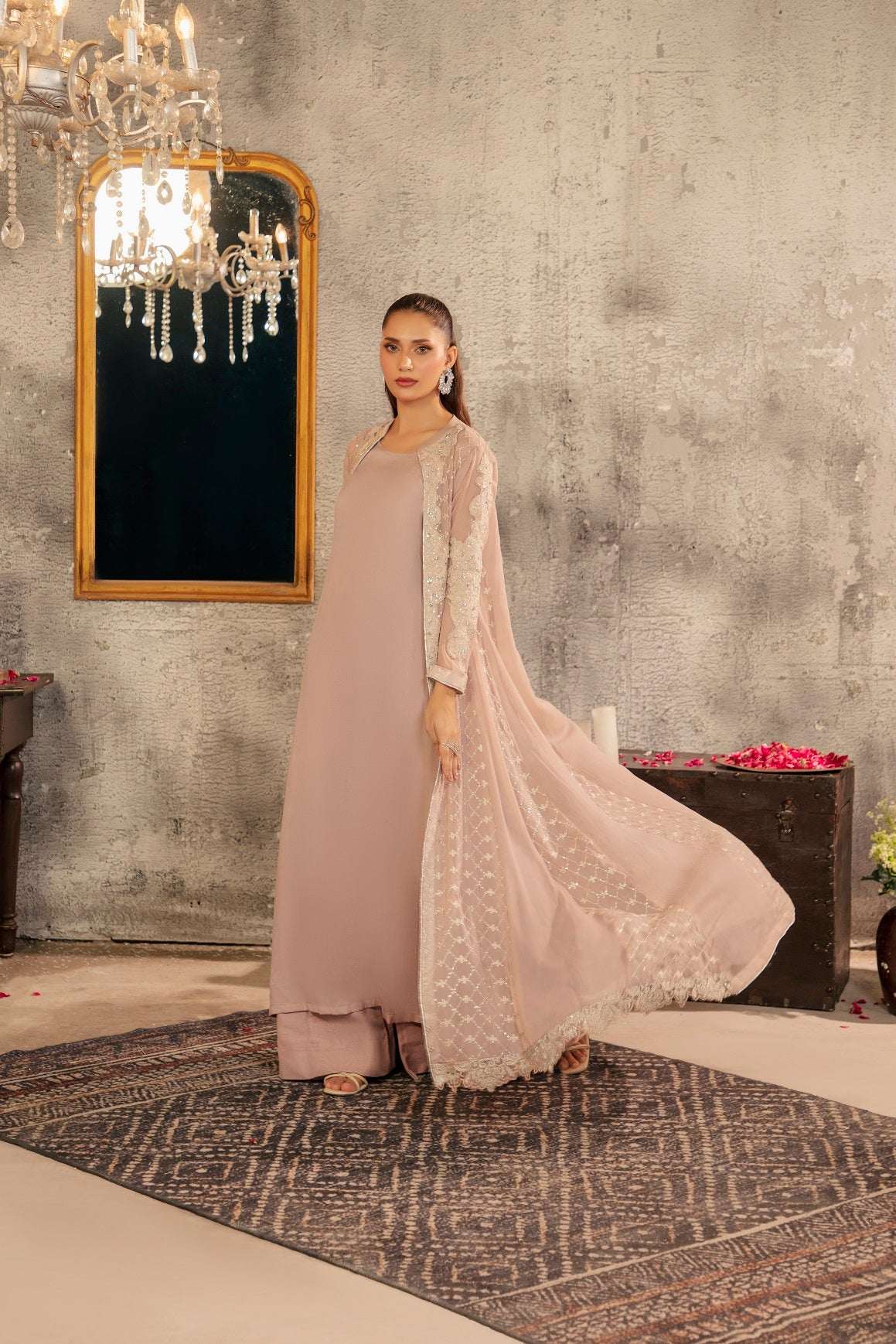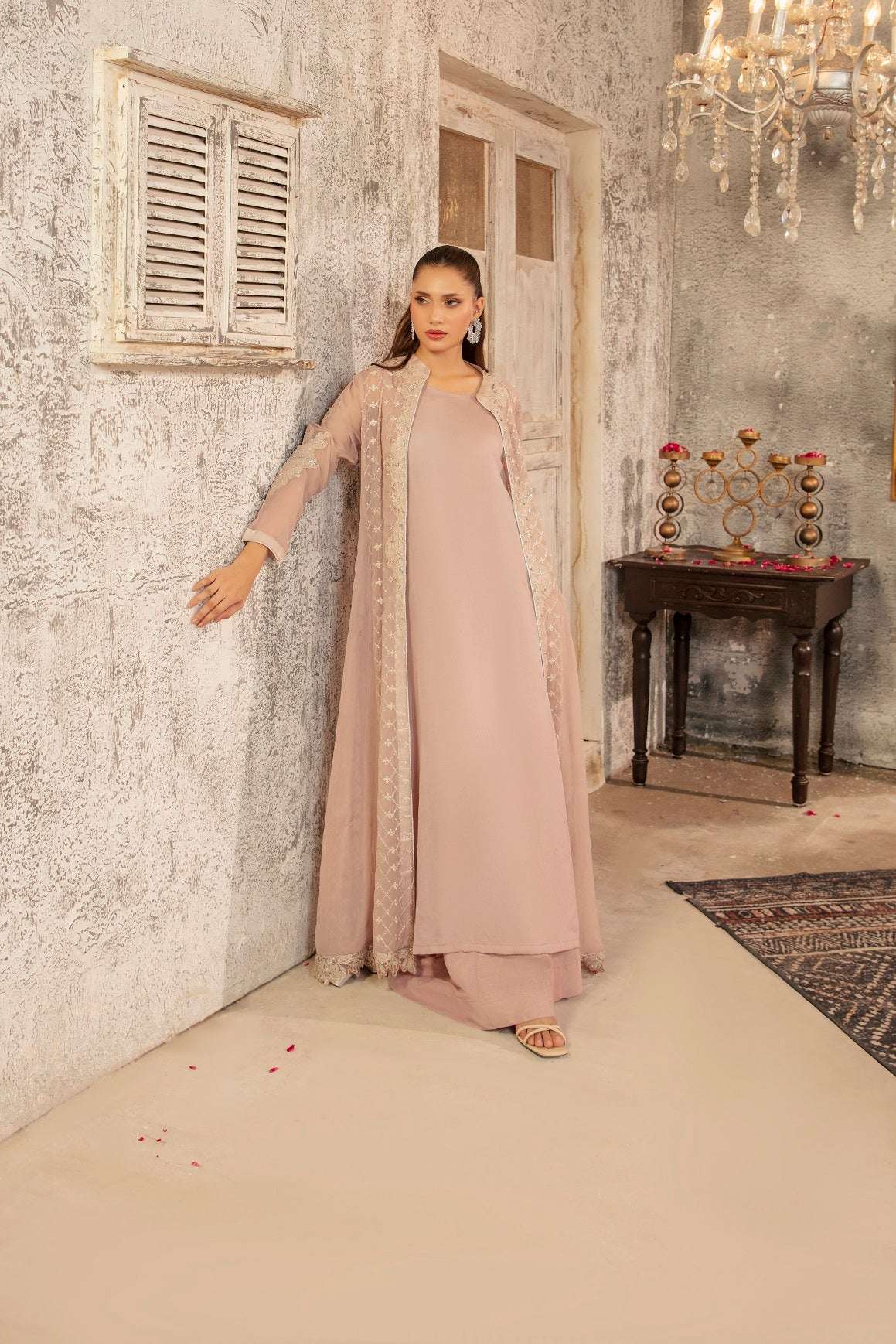 NF-6293 Pink Chiffon Stitched Coat with Inner