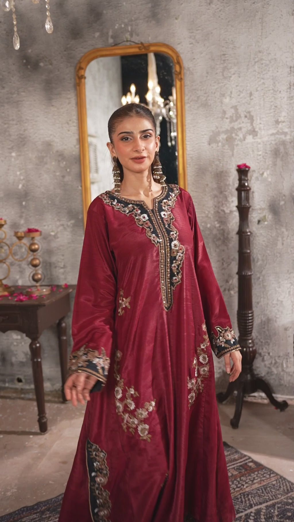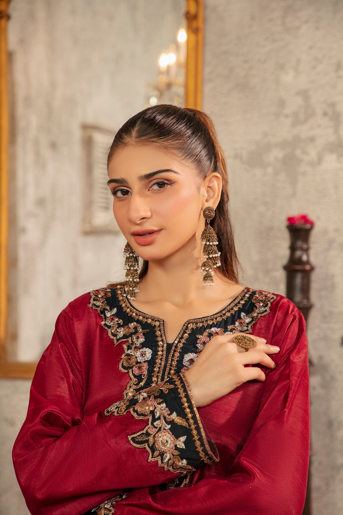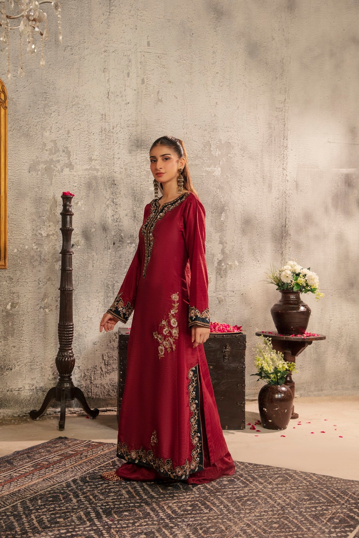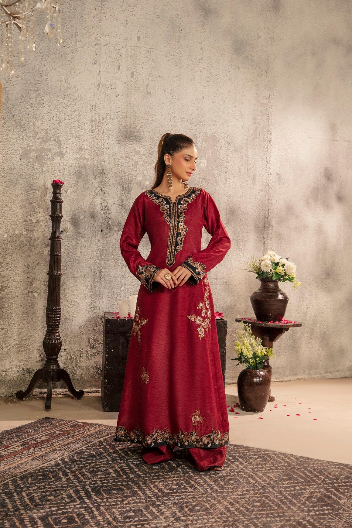 Silk Embroidered Fabric with Hand Work touching with Pant