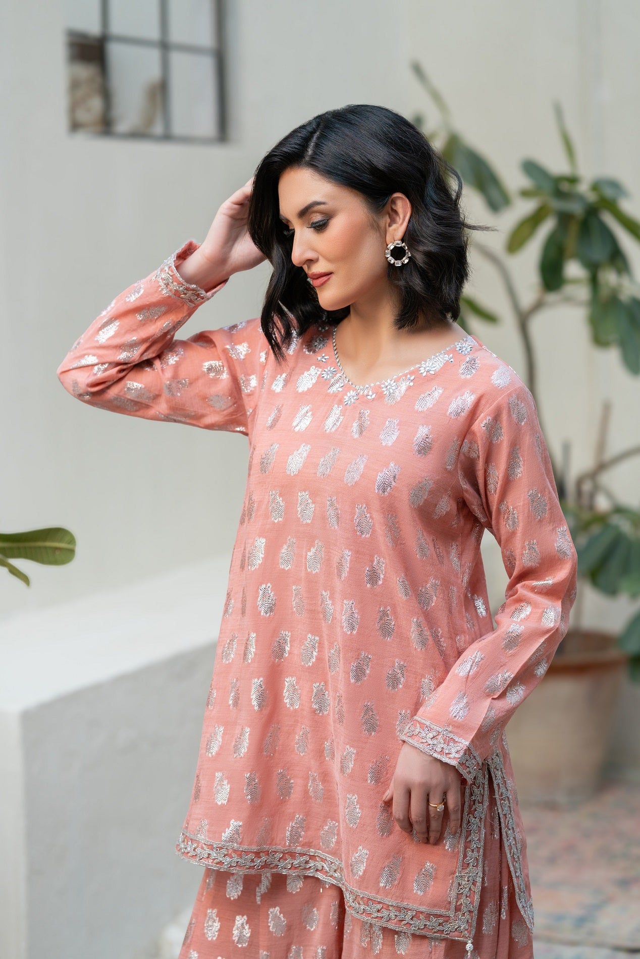 NF-6369 Pink Jacquard Stitched 2Pcs