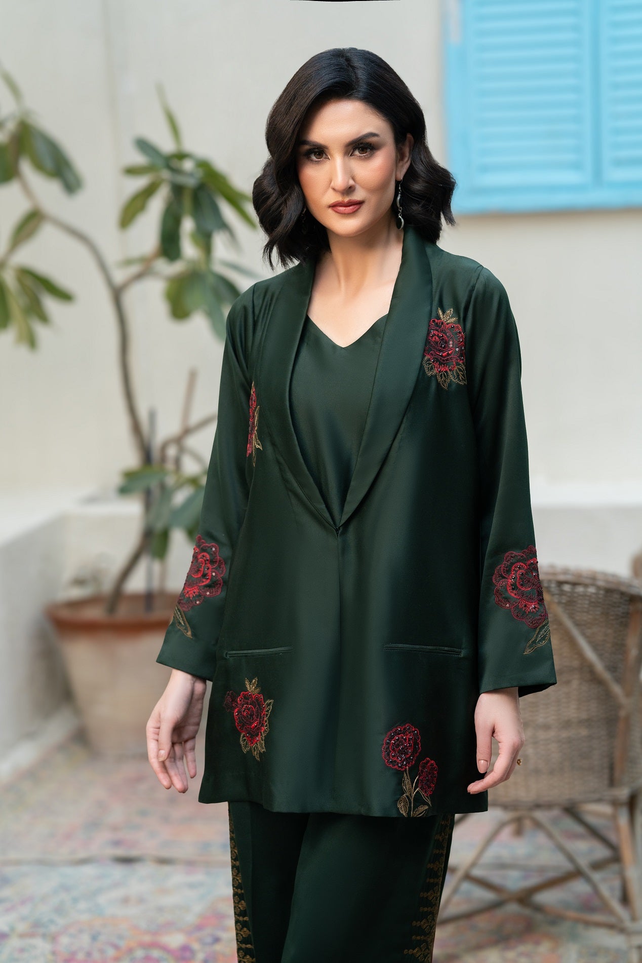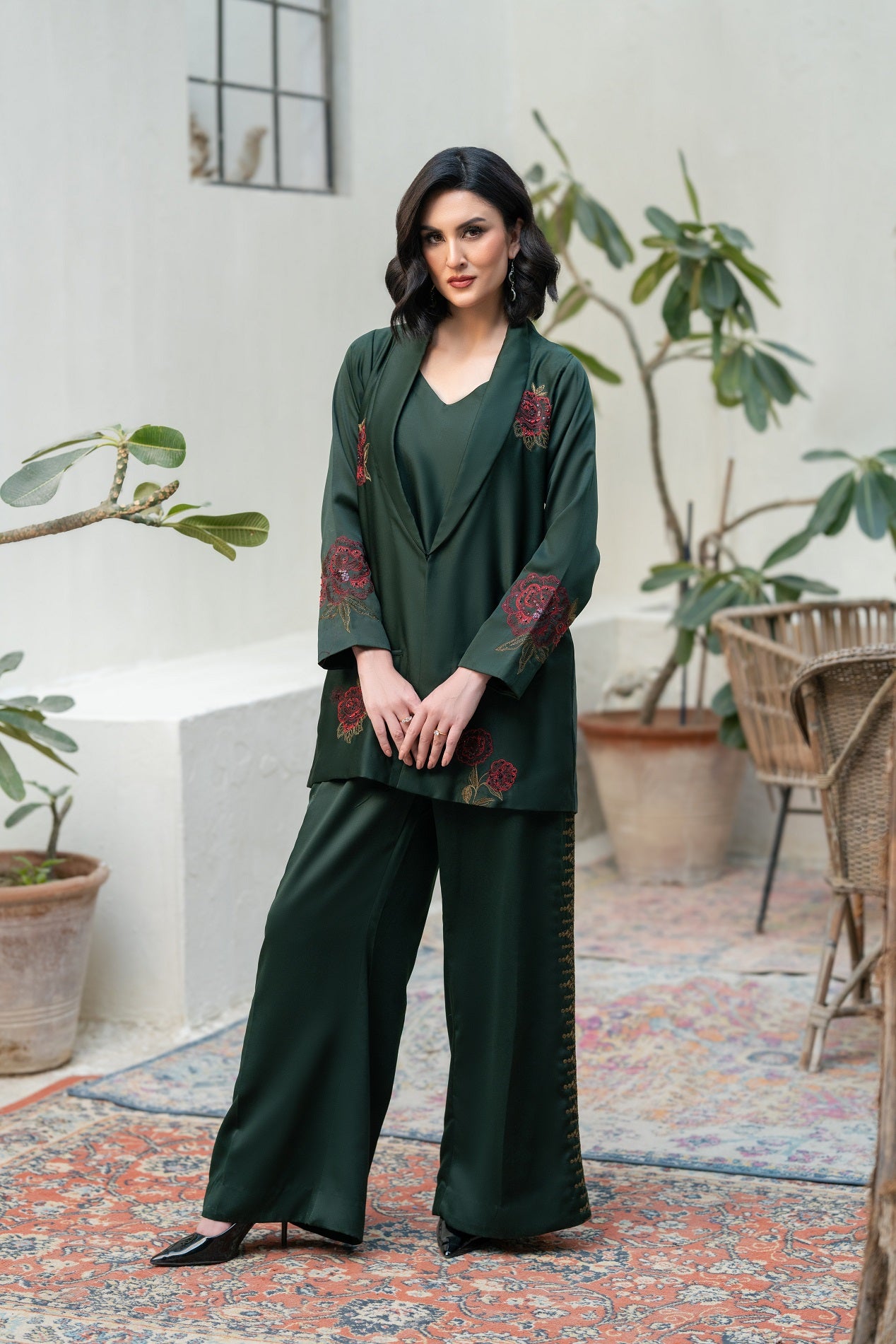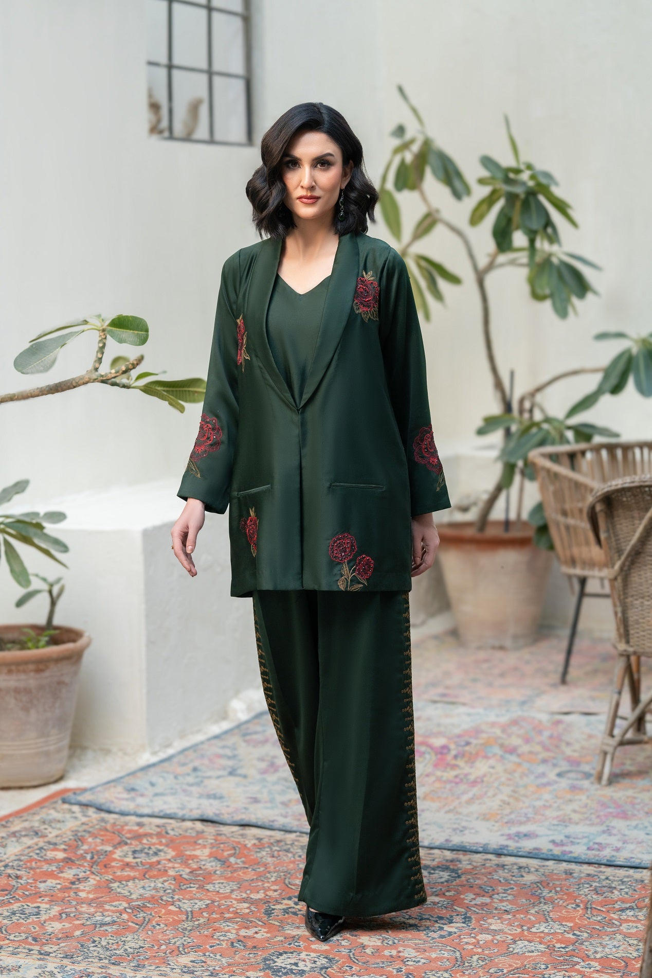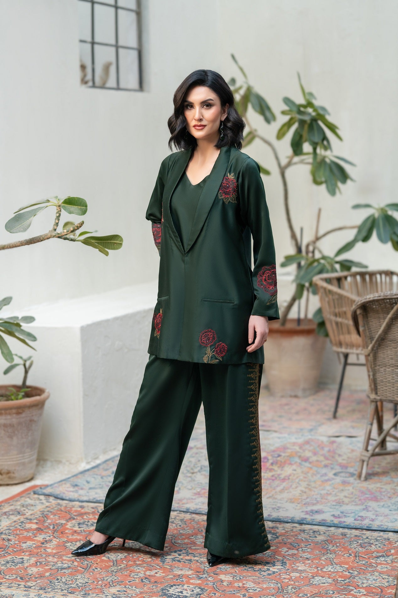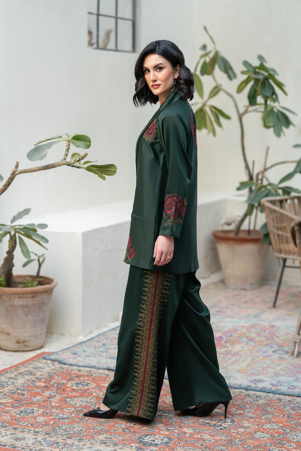 Silk Front & Back Embroidered with Pant