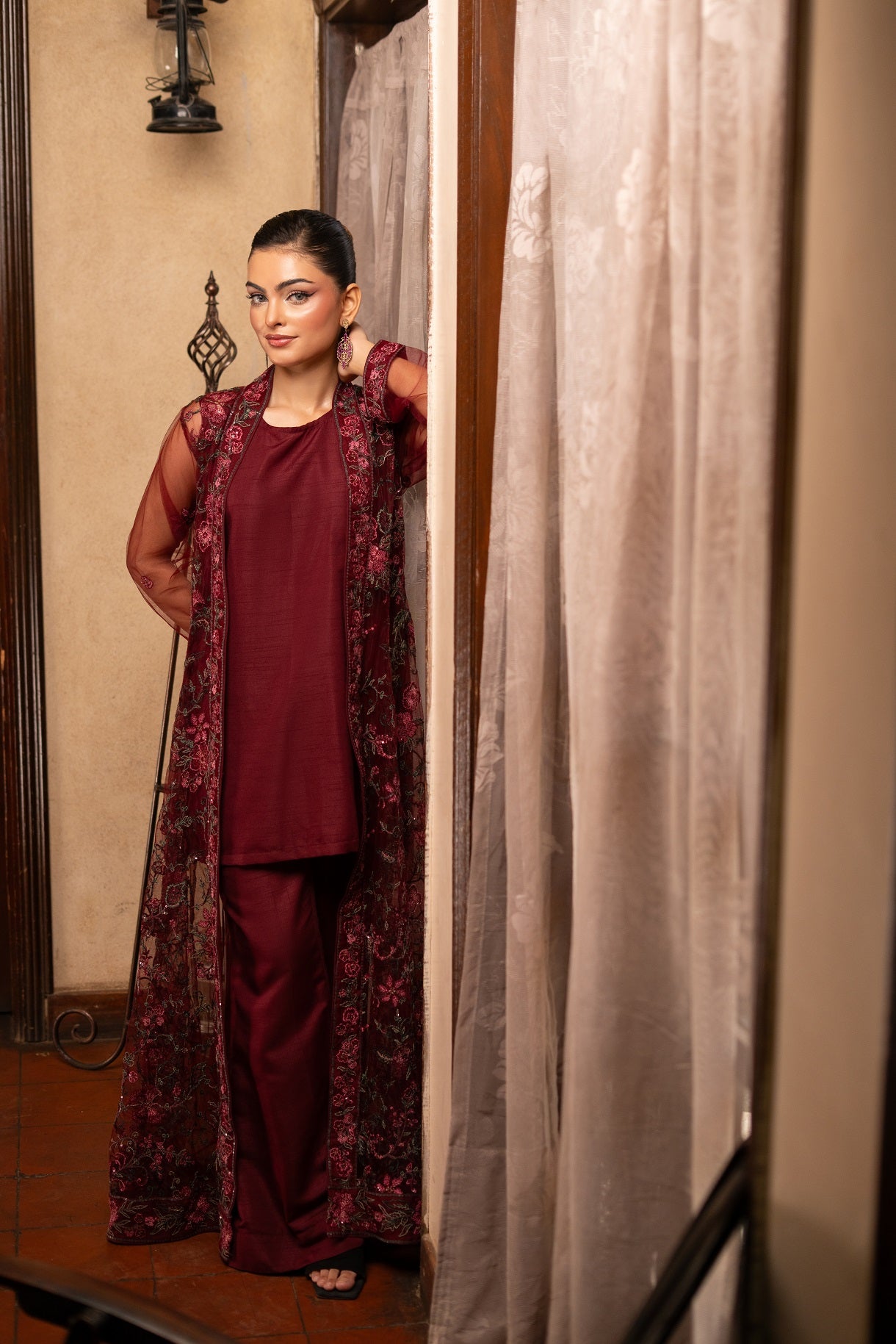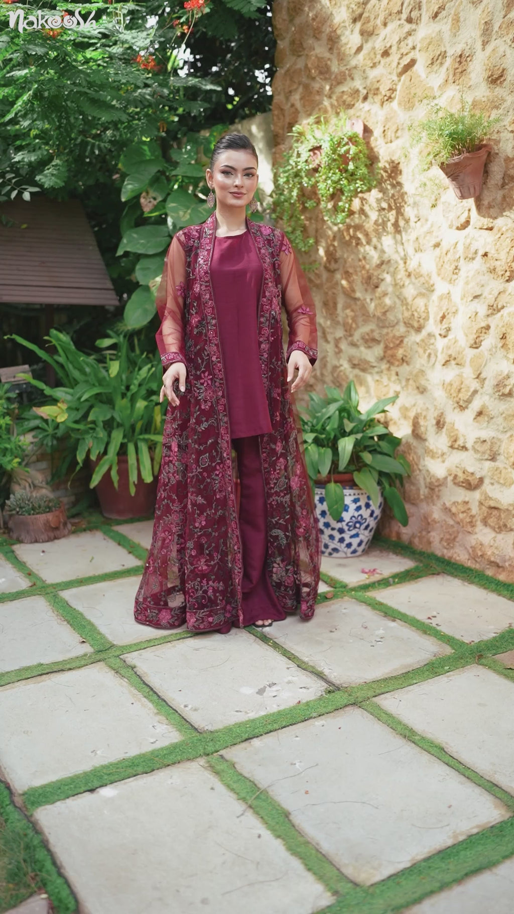 Net Embroidered Gown with Inner  Pant Raw Silk Fabric  Dupatta Net Fabric