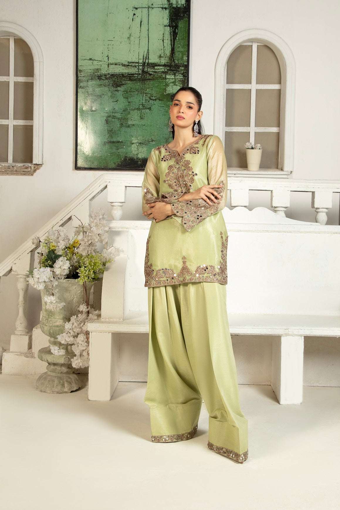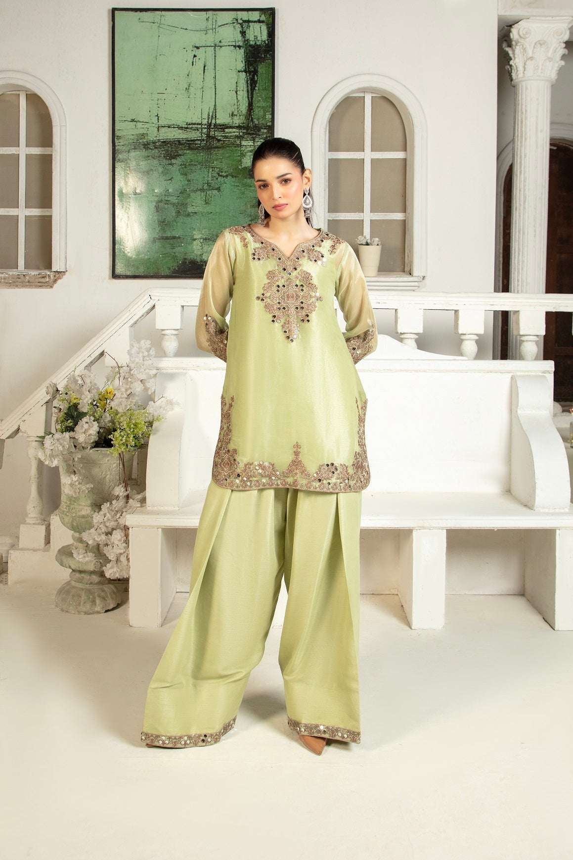 NF-6442 Mint Green Maisori 2Pc Stitched Dress
