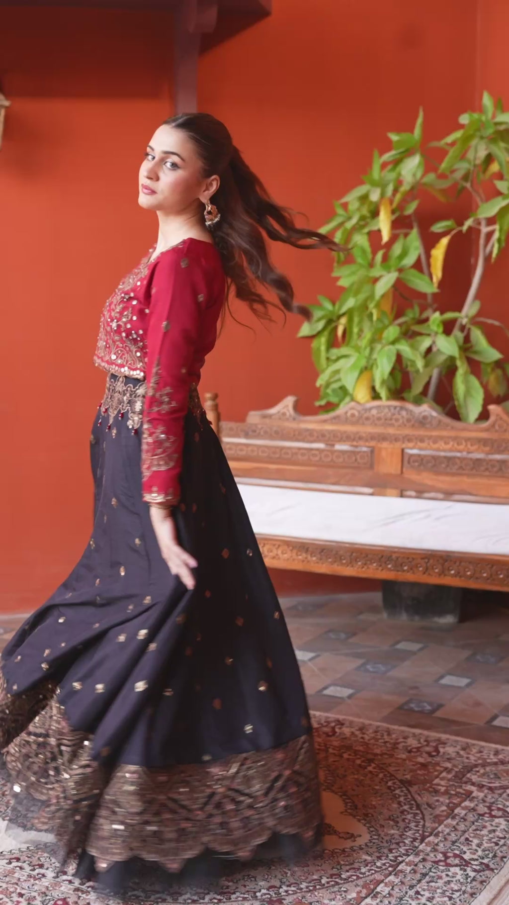 NF-6516 Black Maroon Stitched Lehnga Choli