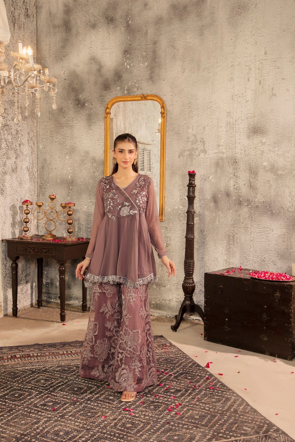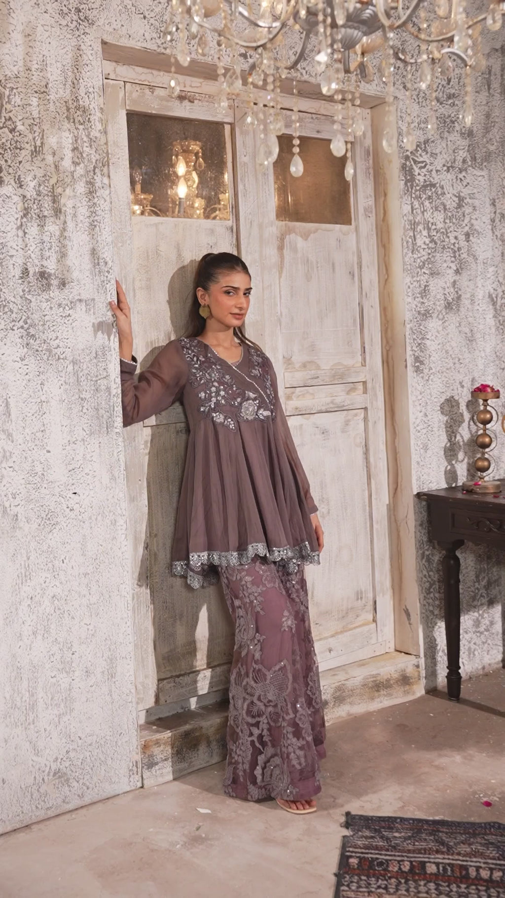 NF-6531 Grey Chiffon / Net Stitched 2Pcs Suit