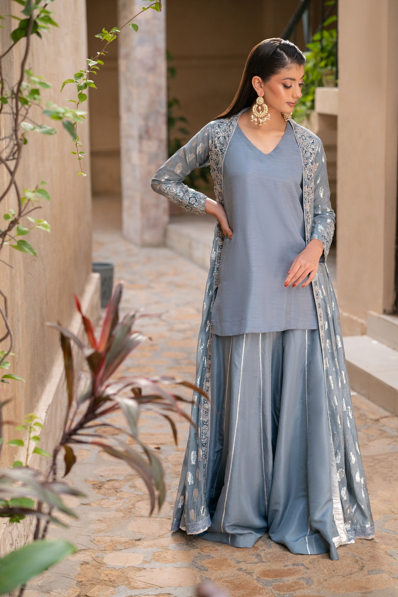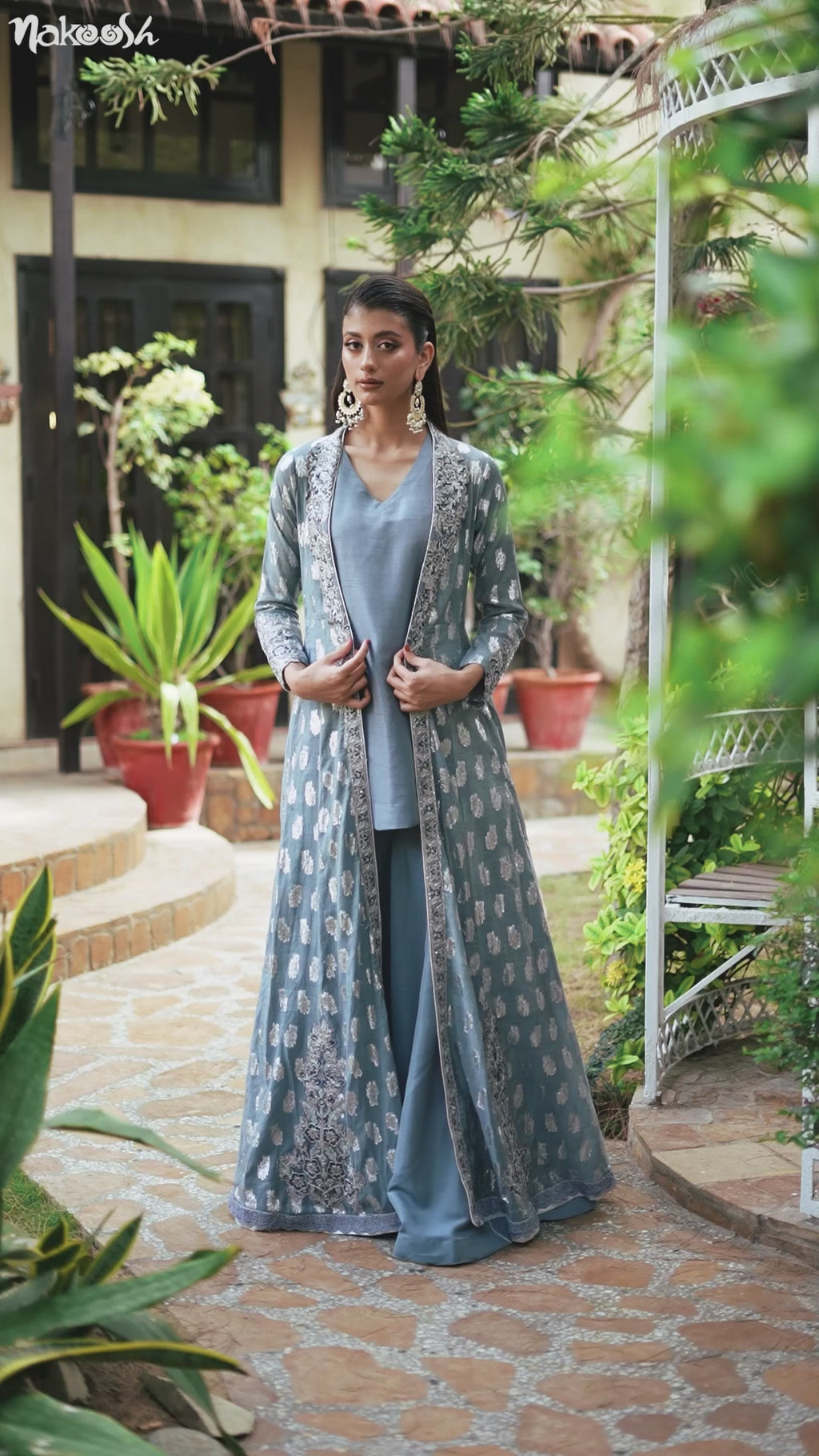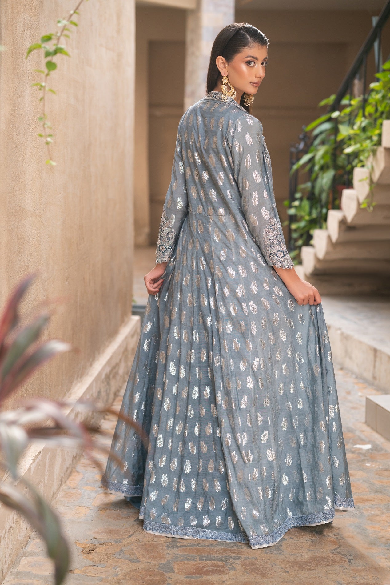 NF-6540 Grey Jacquard Stitched Coat with Inner