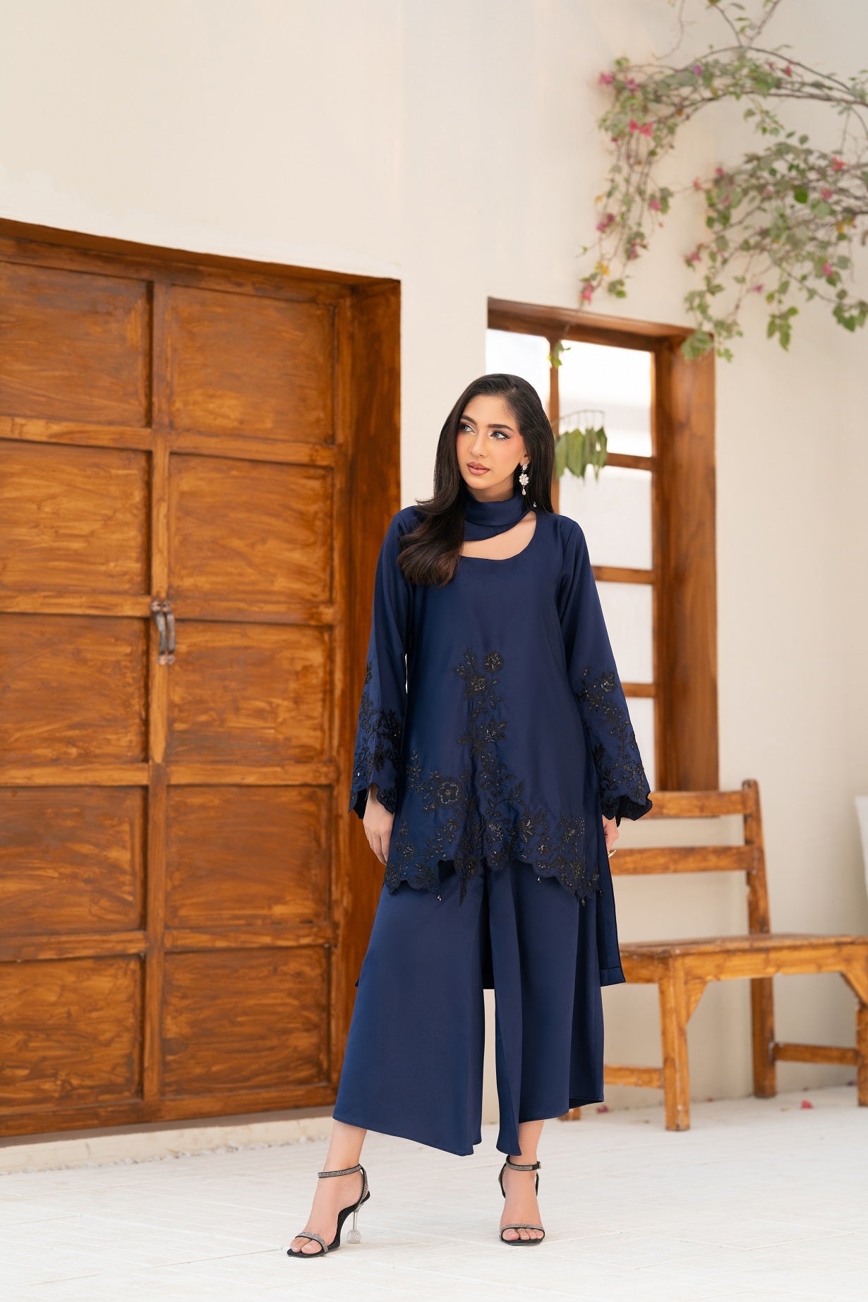 NF-6561 Navy Blue Silk Stitched 2Pc