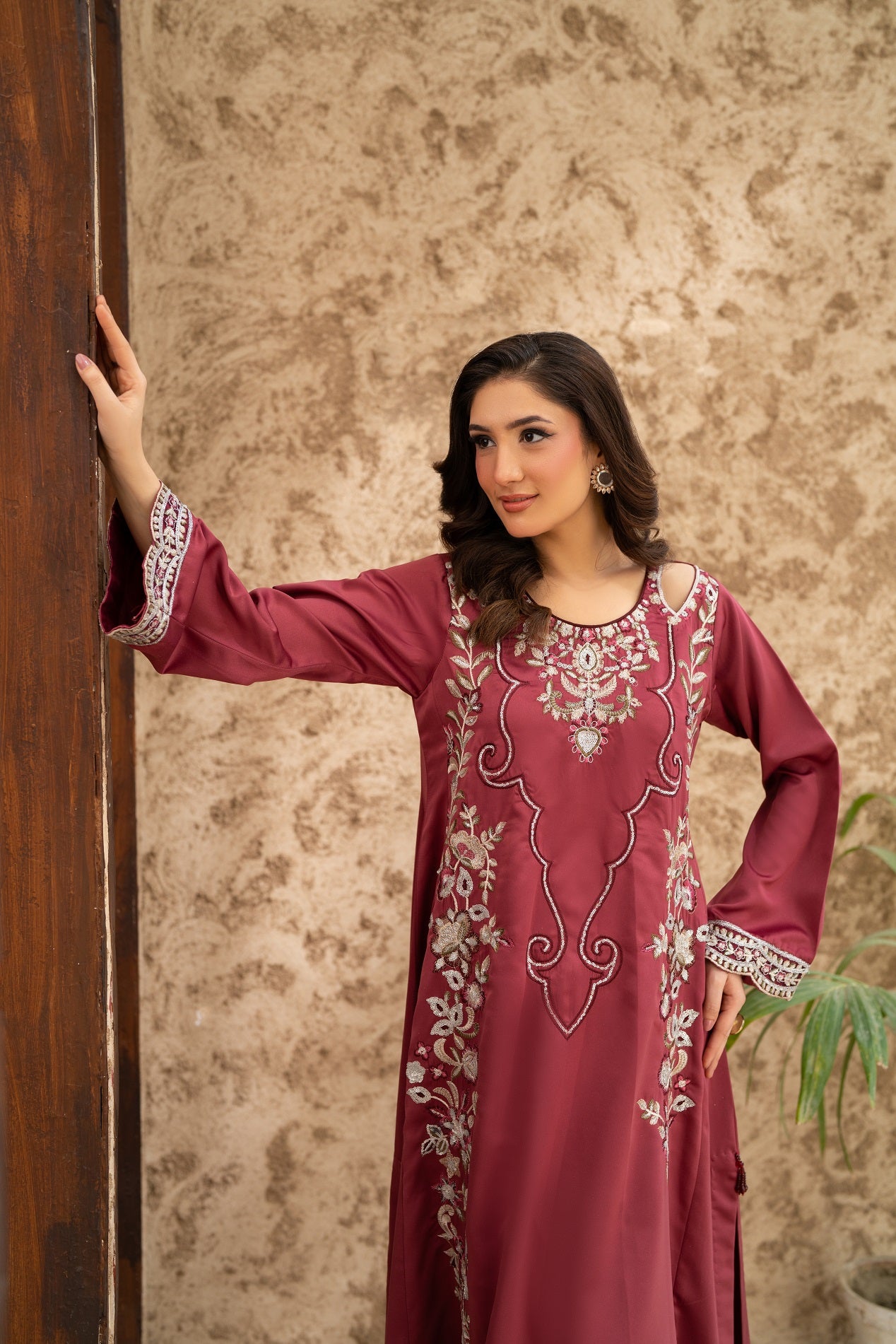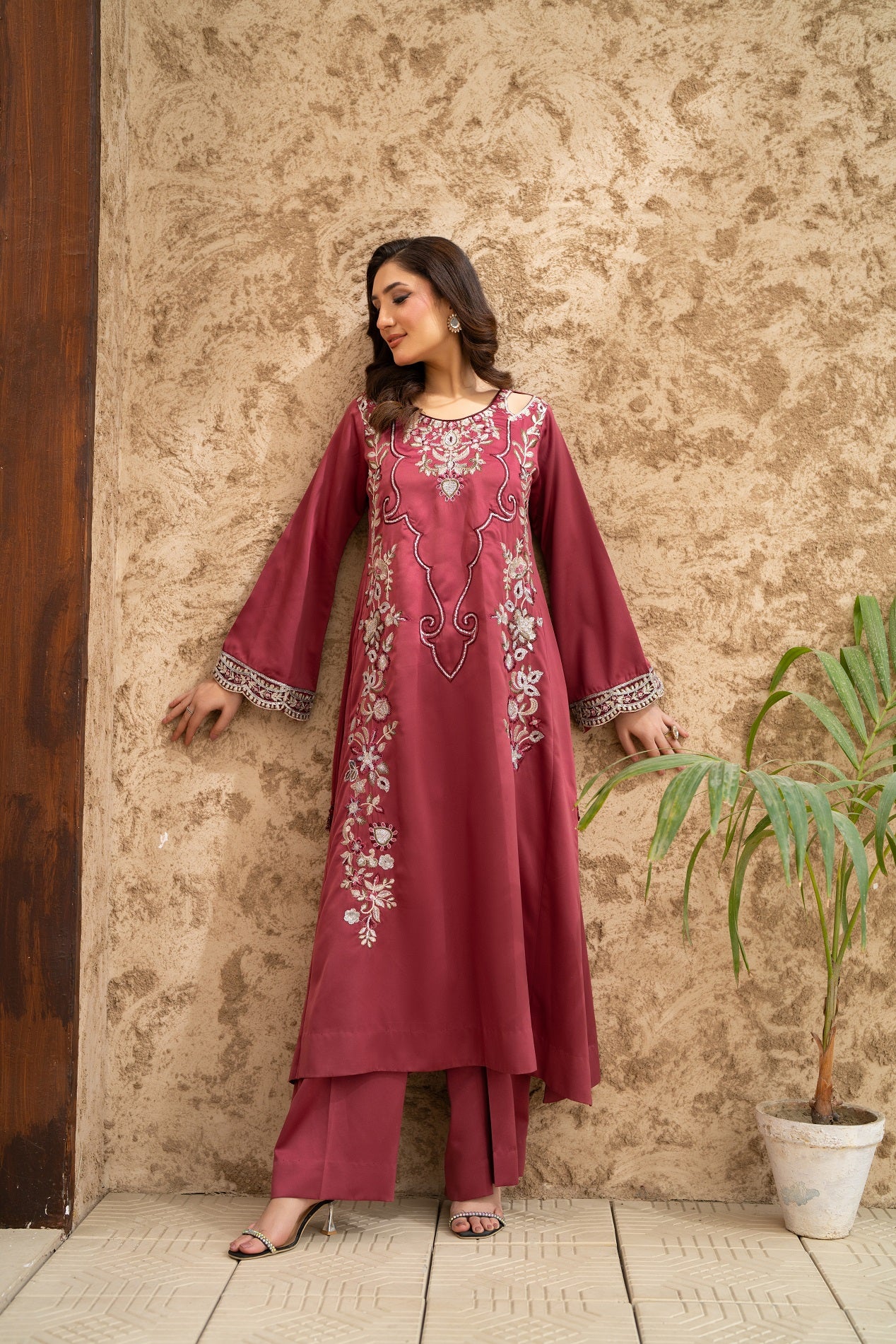 NF-6566 Magenta Dull Silk 2Pc Stitched