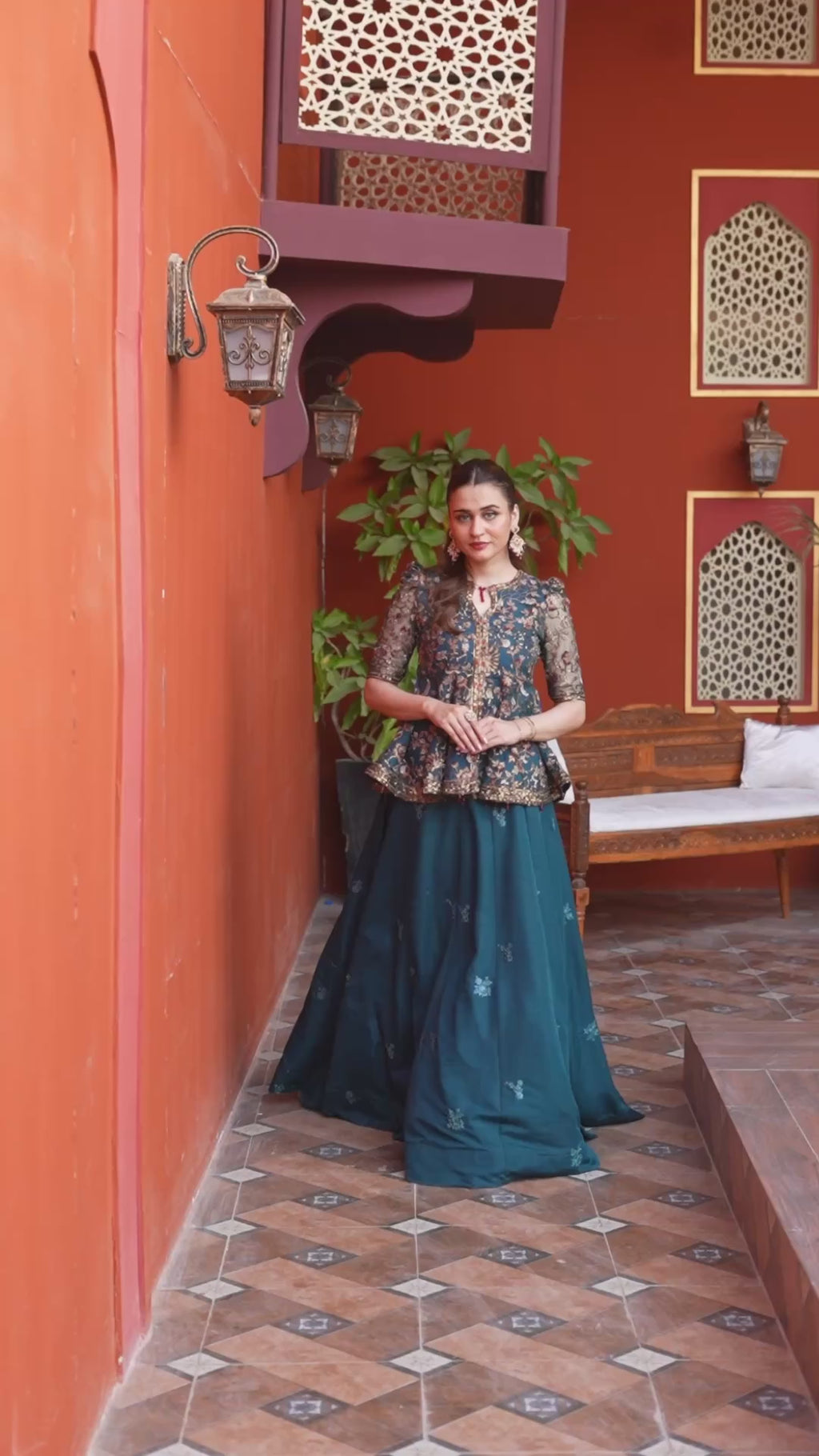 NF-6600 Sea Green Peplum Shirt & Lehnga Suit