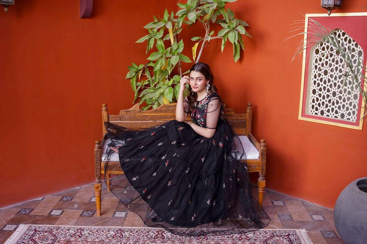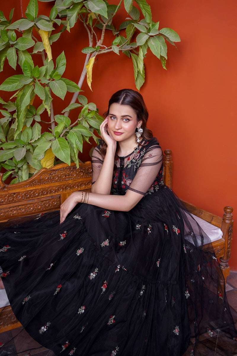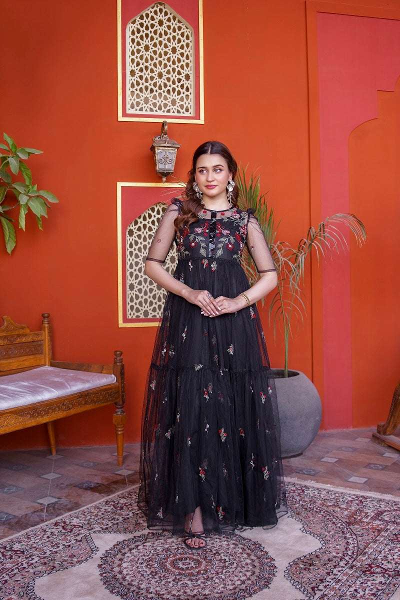 NF-6601 Black Net Frock Stitched Dress