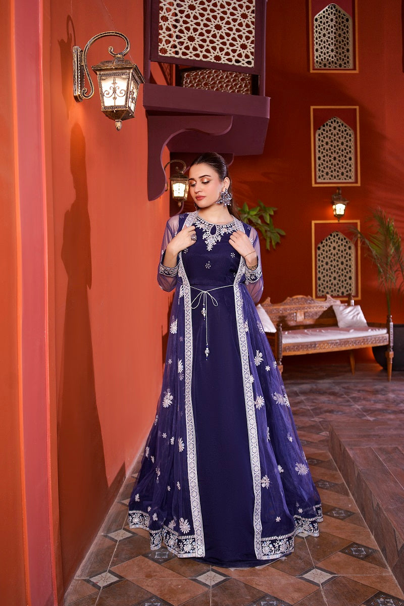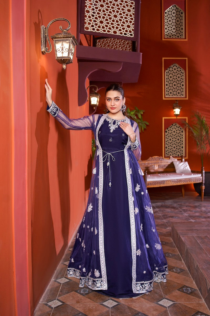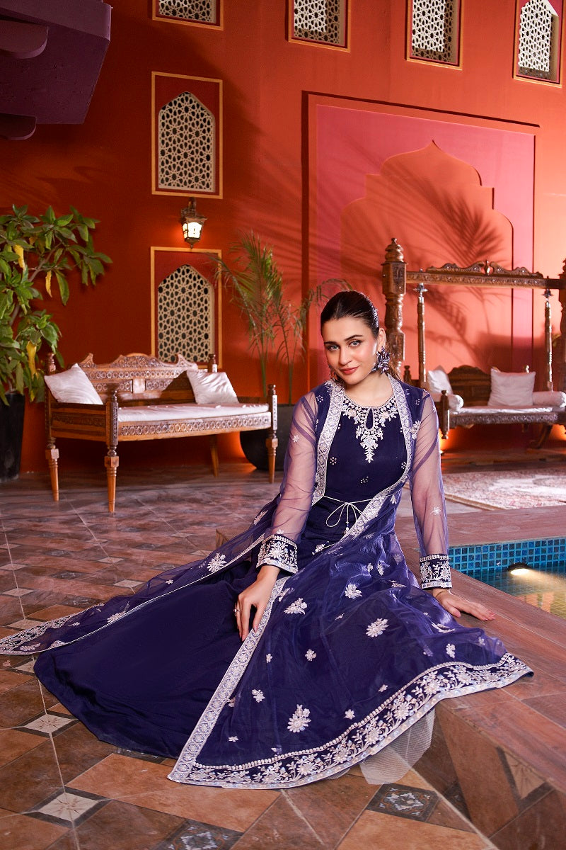 Embroidered Choli with Plain Lehnga Paired with long embroidered Net Gown Dupatta net Fabric