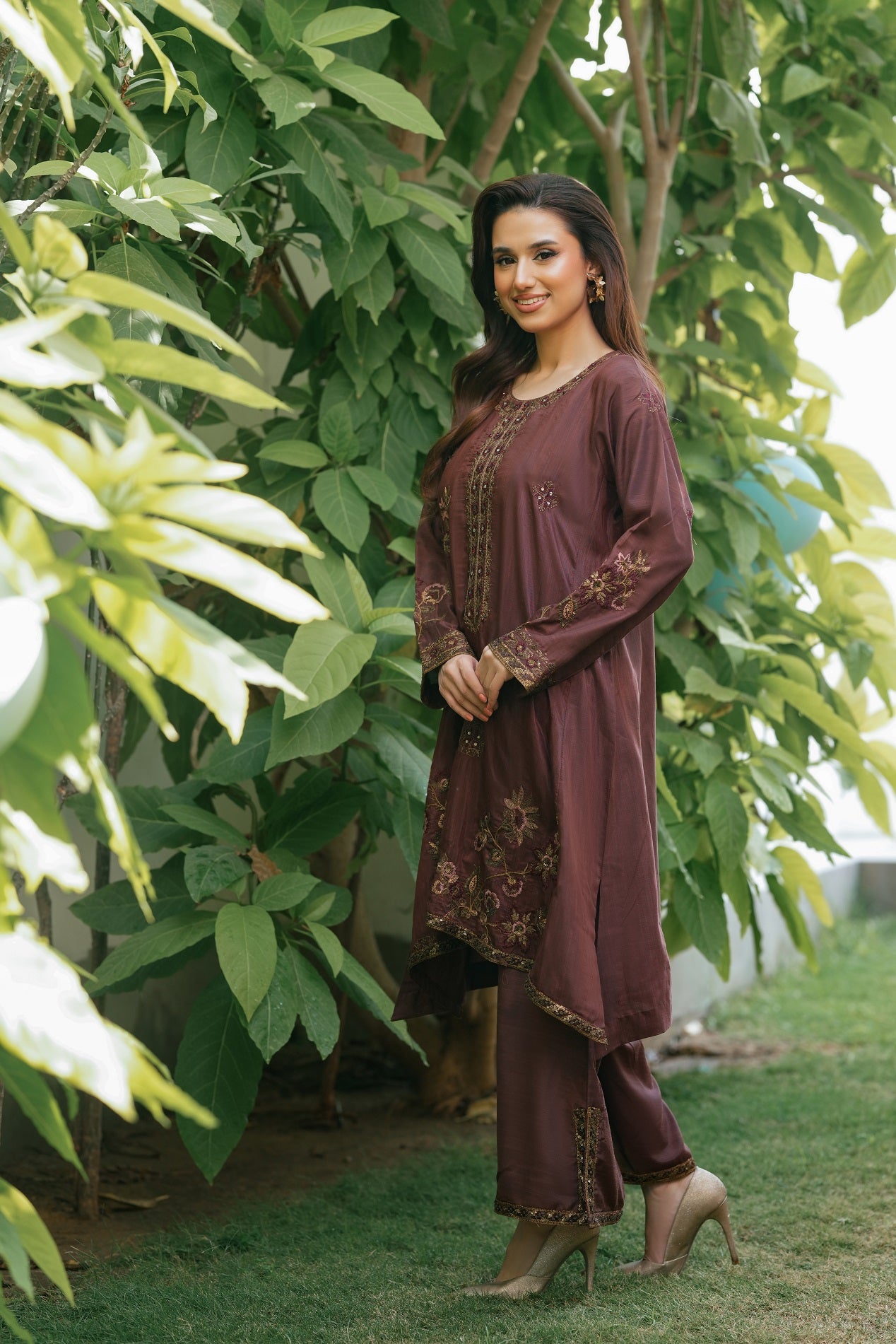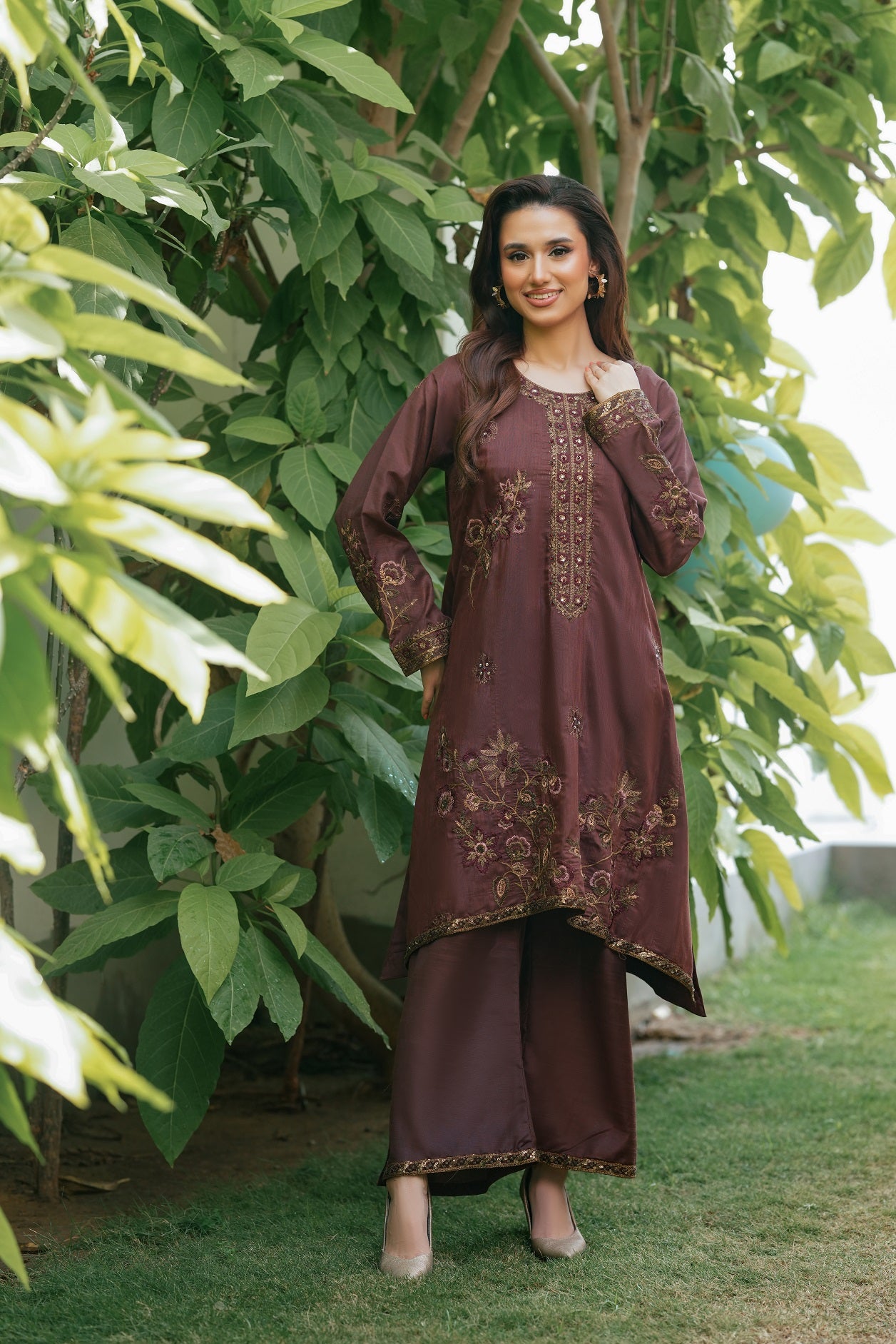 NF-6612 Brown Silk 2Pcs Stitched Suit