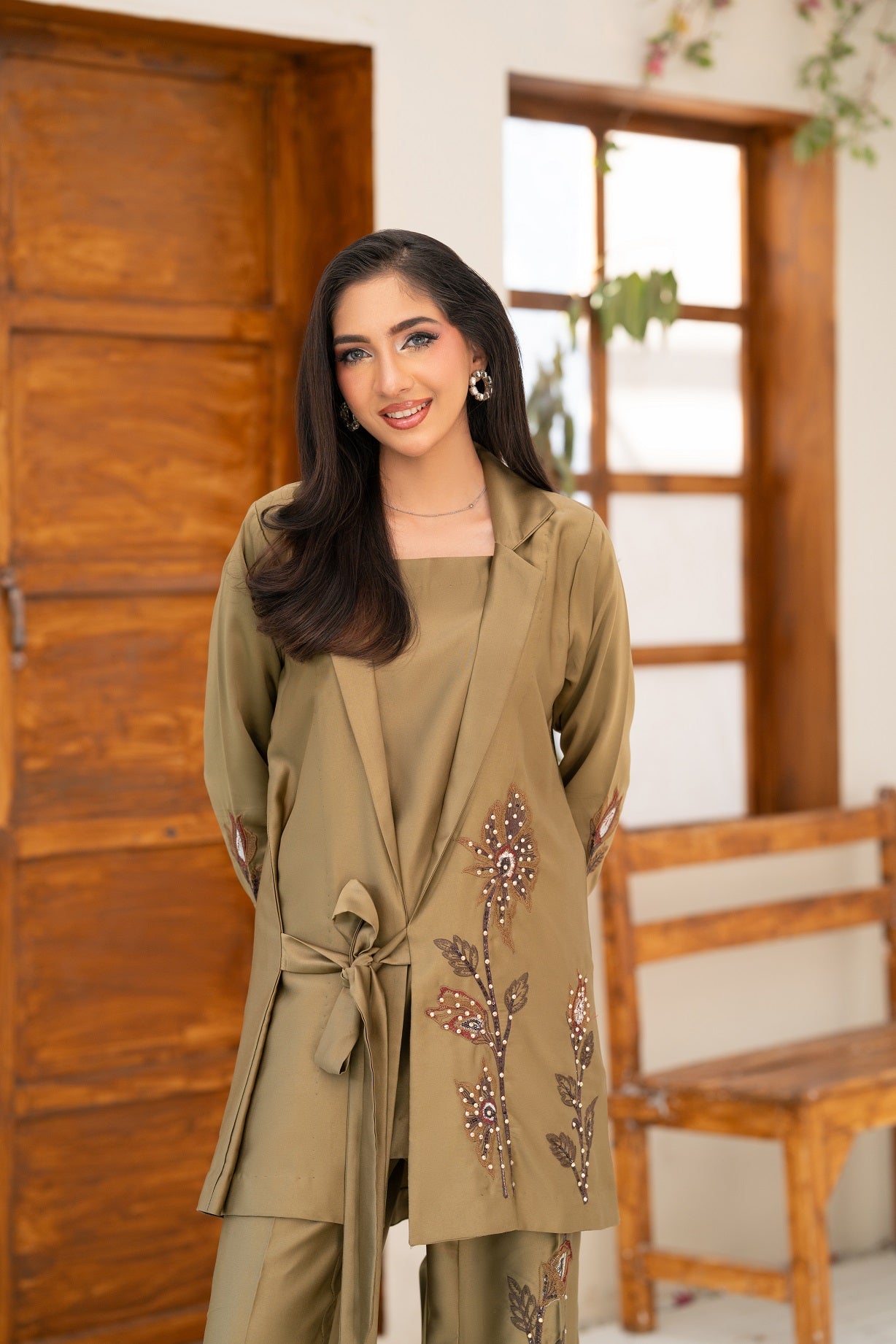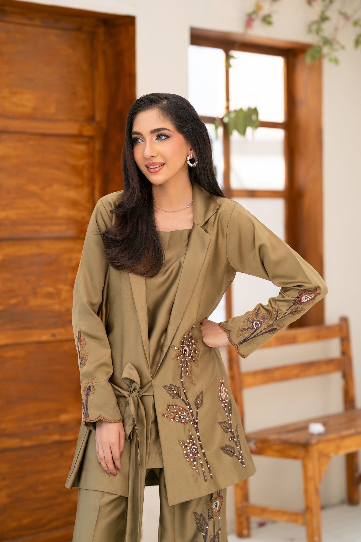 Silk Embroidered Fabric with Pant Embroidered Hand Work Touching