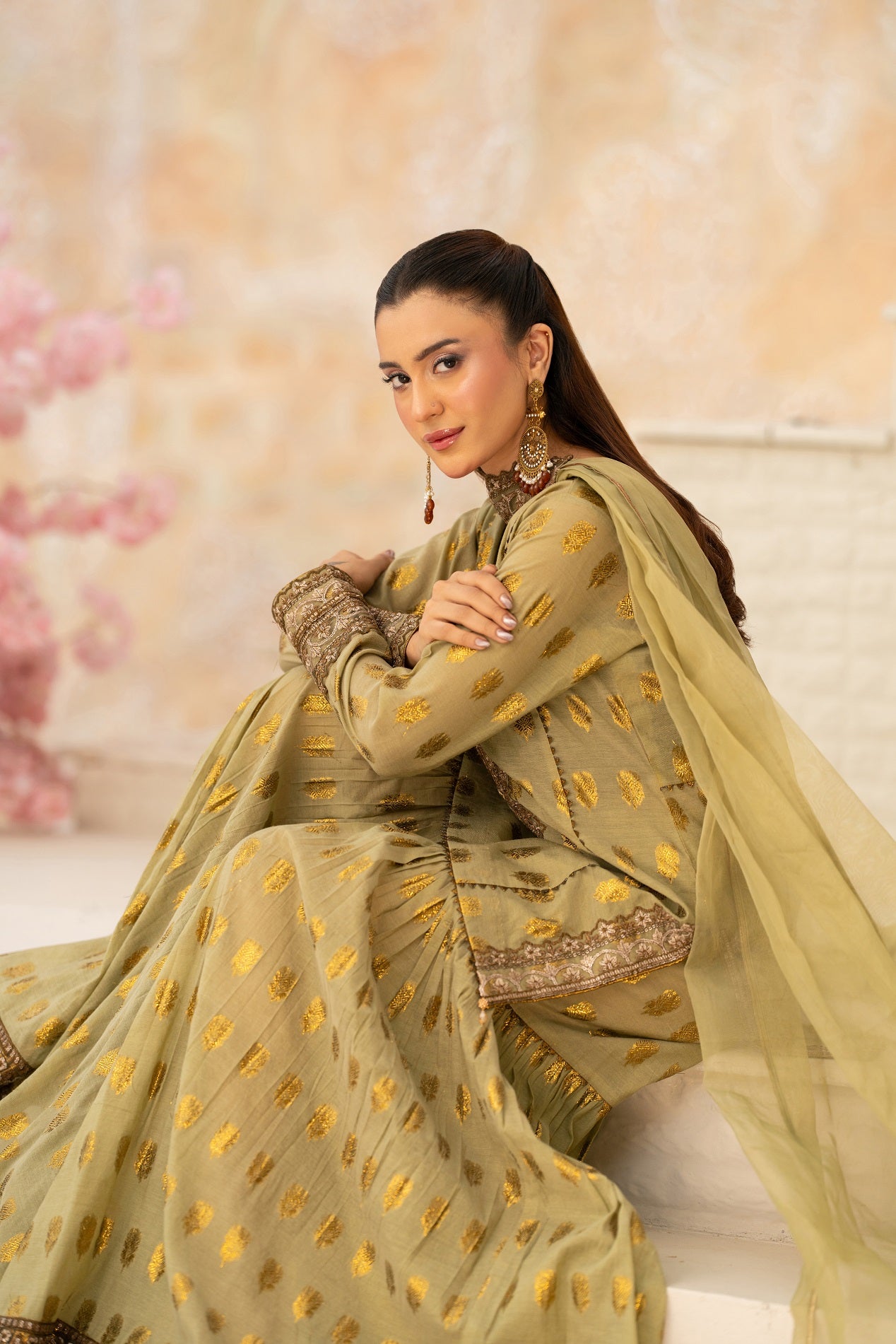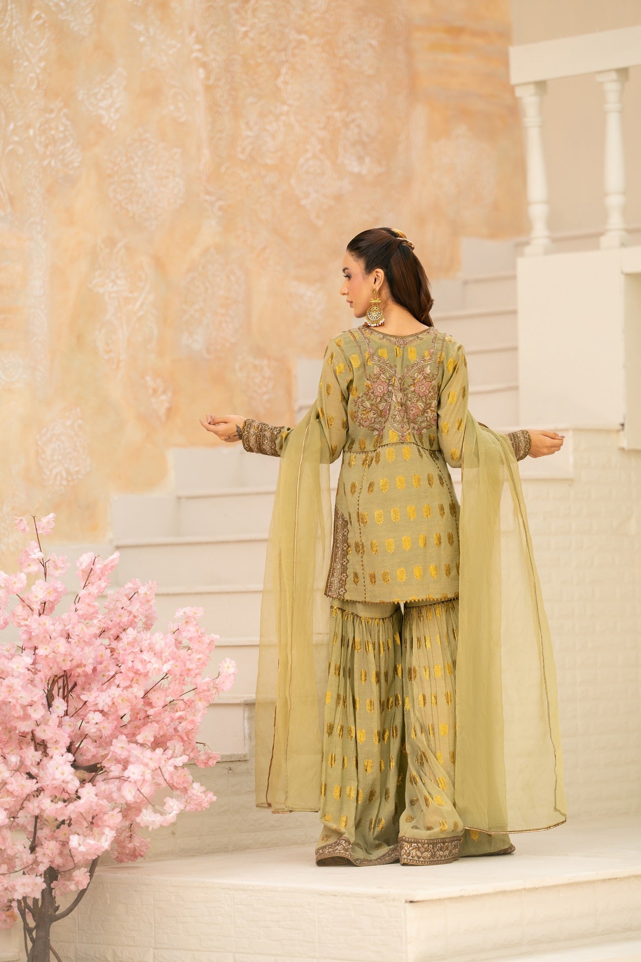 Jacquard Embroidered Fabric with Gharara