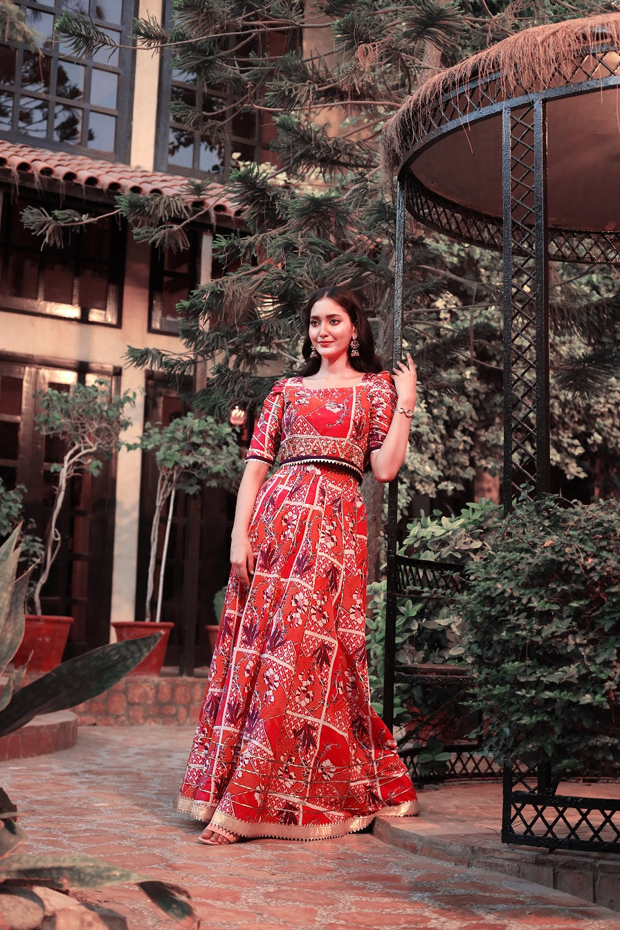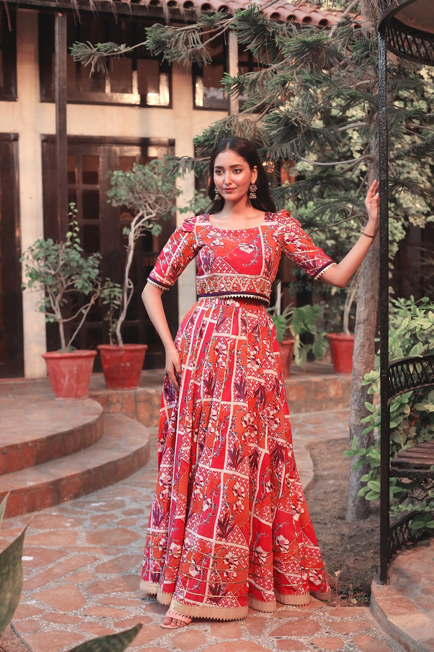 Cotton printed Fabric with Gota lace Lahnga & Choli
